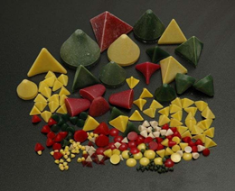 Plastic Media Plastic media is recommended for general metal removal, pre-painted or pre-plated finishing, polishing, and fast and heavy cutting. Plastic media is used for soft metals (such as brass and aluminum) or stringy materials to avoid rolling the burr over into a hole. Plastic media produces a very smooth finish, but very little shine. Plastic media is safe for parts with threads and is good for preparing parts for anodizing. The tetrahedron and cone shapes are good for parts with holes. The triangle shape is good for corners and flats. Combinations of plastic media can be used to process geometrically complex parts. |